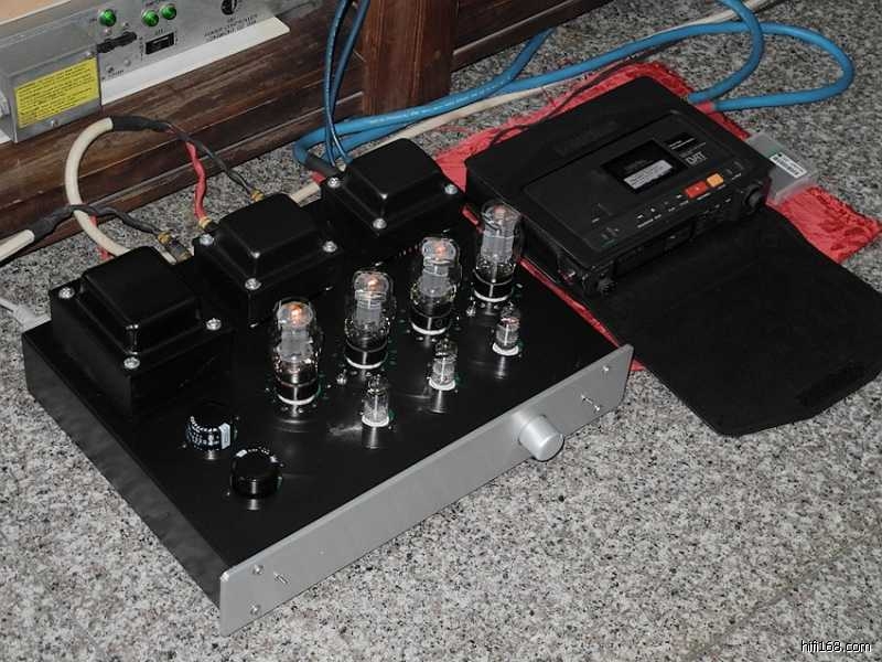 整机的试听,在系统连接之后一次性送电开声正常,从所试听的三张CD唱片外加一盘DAT来看,这台6P3P推挽胆机的声底趋向厚实、淳和的暖声调,和以往制作的单端300B相比在声音表现上明显不同,低频更有力度一些,高频丝丝如扣的光泽感虽不及300B,但中频厚润了不少。由于驱动功率较为强劲,因此聆听电影音乐“悲情城市”一曲,电子合成器演奏的旋律低音及打击乐更富于震憾力。DAT录制的是一盘扬琴独奏曲,6P3P推挽机显然具有某种润色的功效,由此能将击弦乐器表现出来的颗粒音符中和的更加温馨入耳。另,由于整机具备2X25W不失真驱动功率,因此在16平米客厅用来推动一对JBL4312A音箱,音量旋至12点钟刻度时,已能获得足够的声压强度。