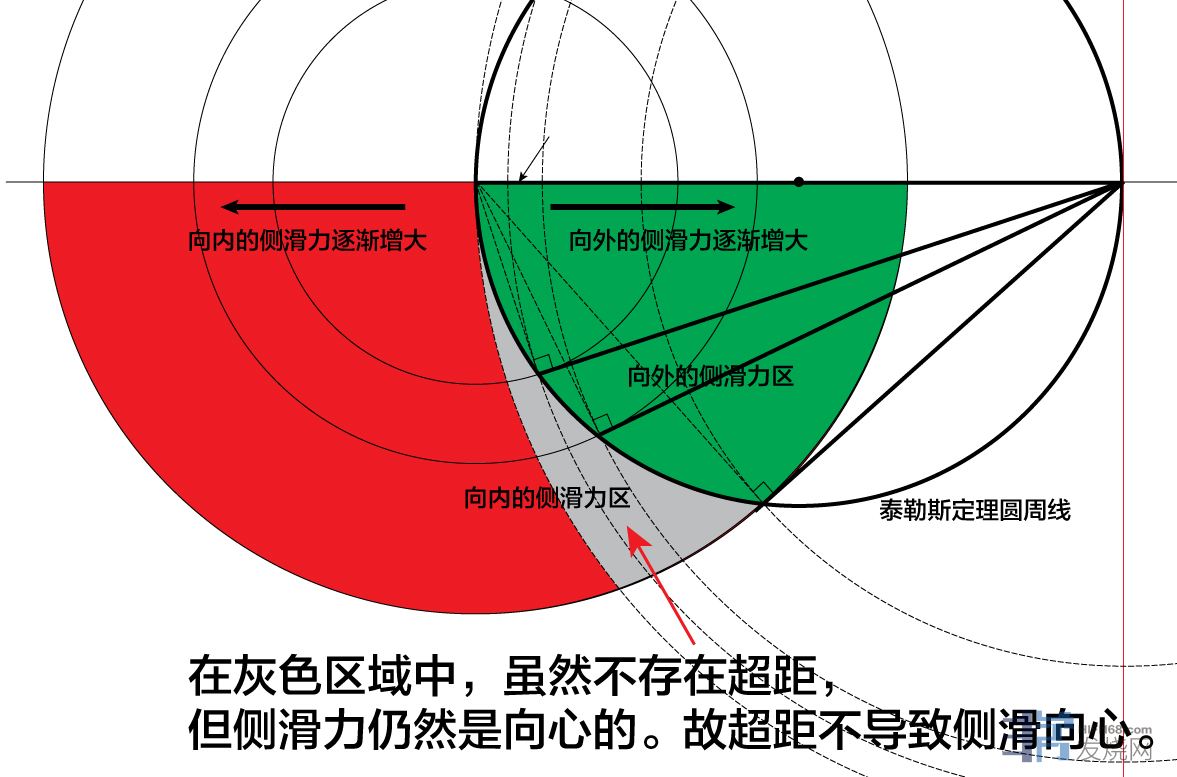 为了顺应你这个一根筋,那就再补充一句,这个超距是以切点弧线为界。