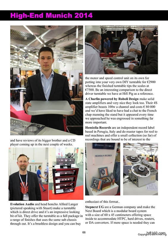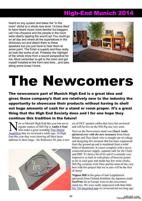 编者注:英国Hi-Fi杂志《HiFi Pig》2014年6月刊上刊登了今年慕尼黑Hi-End展的报道,其中当然也有关于SoulNote参展的报道,另外,在28页还有我们的整版彩页广告。如果想要了解更多内容,请上http://hifipig.com/wp-content/uploads/2014/06/JUNE.pdf下载《HiFi Pig》2014年6月刊(可能需要翻墙)。下段文字是杂志中慕尼黑Hi-End展报道中对SoulNote的介绍部分,图片中的人物是SoulNote在欧洲的独家代理商Nippon Hifi的负责人Jani Leppälammi先生。