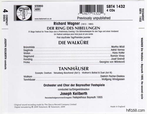19541954 TESTAMENT 凯尔伯特指挥《唐豪塞》 July 22, Tannhäuser - Brouwenstijn, Wilfert, Vinay, Fischer-Dieskau, Greindl – Keilberth issued on CD by Archipel on ARPCD0280
