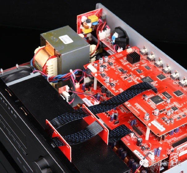 类比放大电路设计部分,圣歌是以Hi-Fi的高标准进行设定,为了避免环绕机种因为电路太过复杂对声音的影响,圣歌让声音讯号同时放大与传送,在经过简单的两级放大后直接进入主电路板的放大级,由每声道一对的Sanken 2SB1647/2SC2560大电流功率晶片进行推挽输出。这样的设计令人耳目一新。