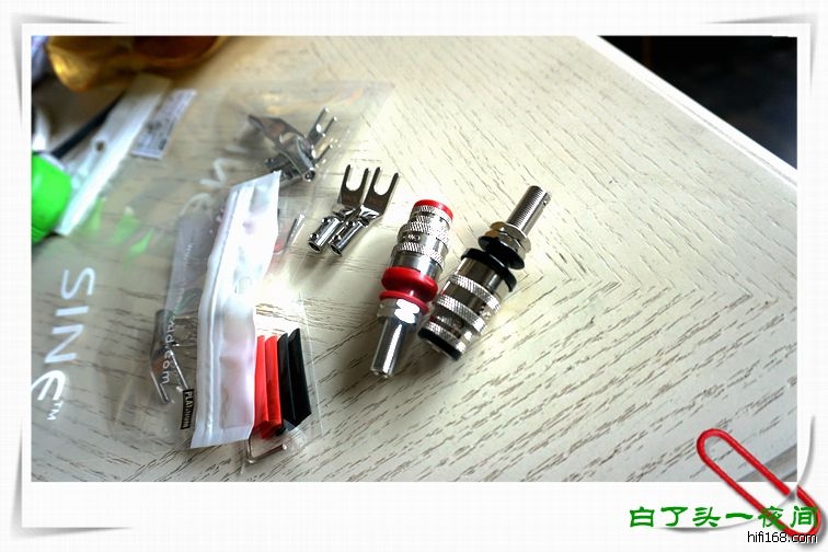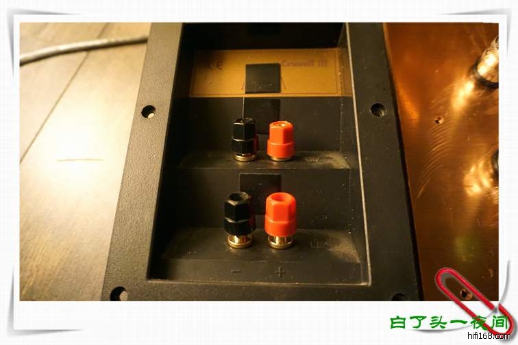 2,音箱的接线柱和接线盒,接线盒是塑料制品,厚度也比较有限,接线柱是小型的,观察铜质也比较差,且两个接线柱之间的距离太近,造成接线很不方便,所以也必须换掉。