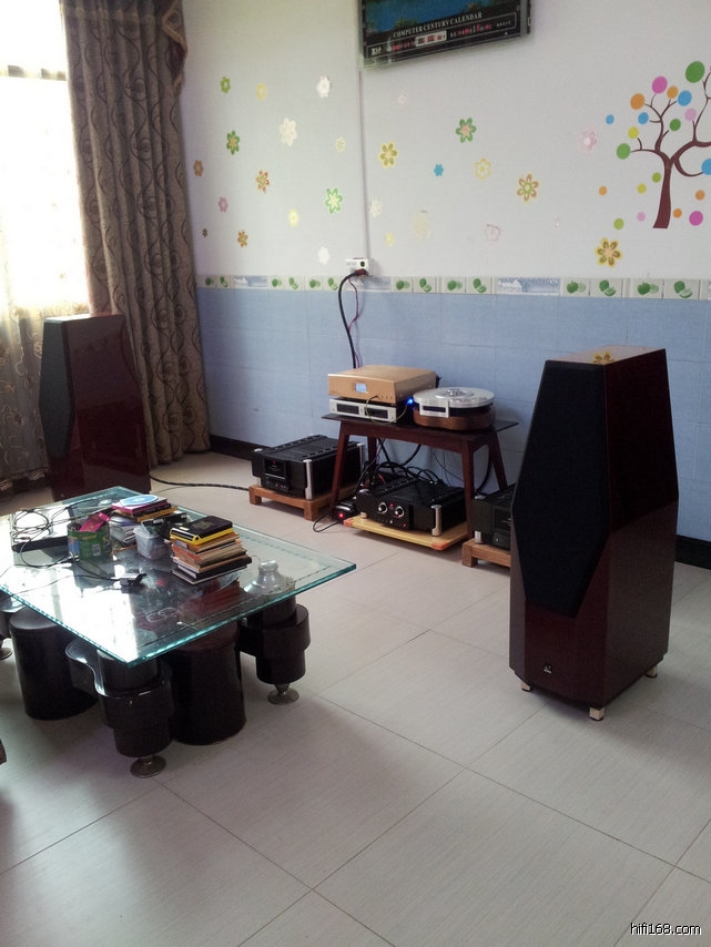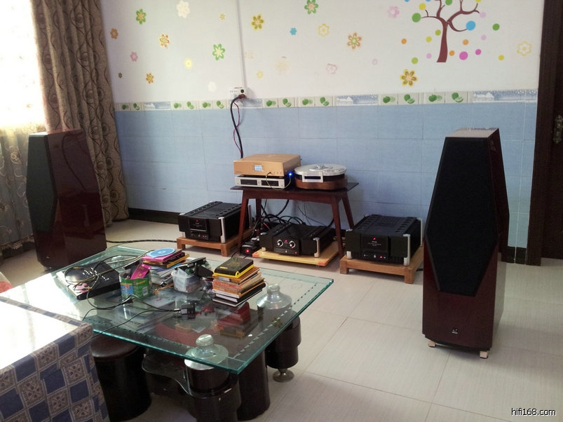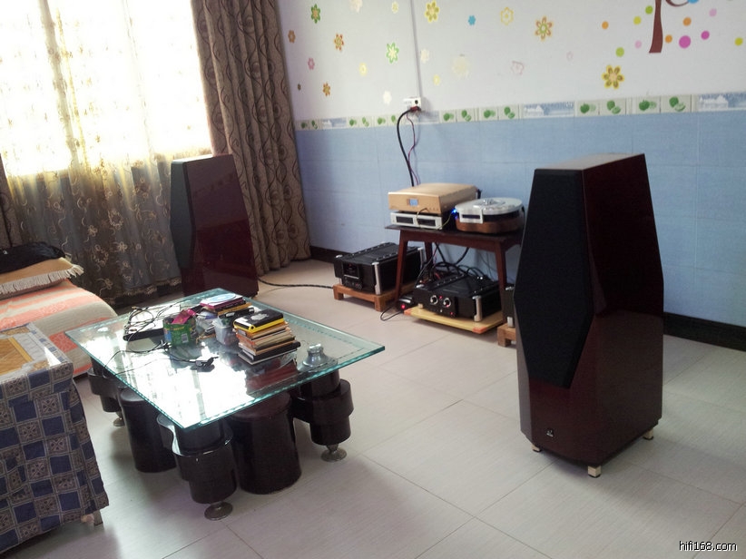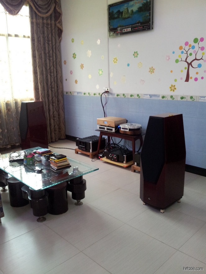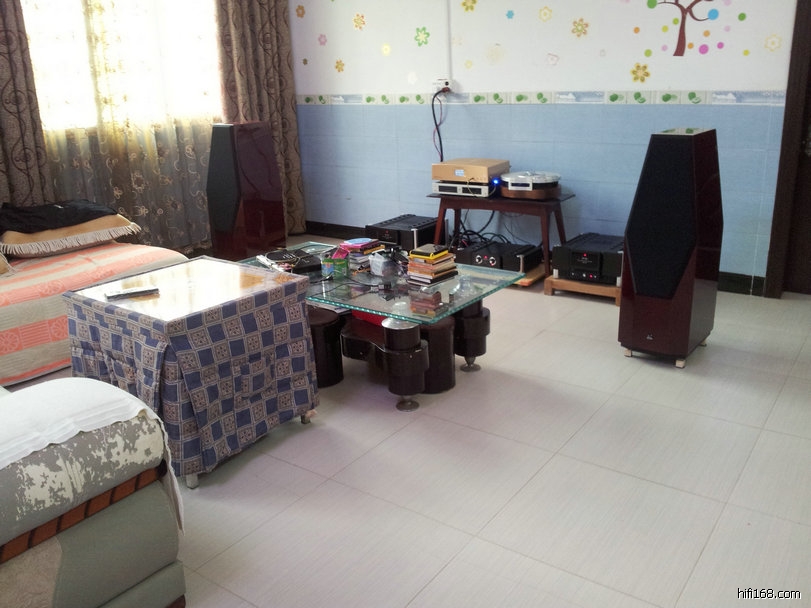 系统后面有几个布沙发,起着吸音作用,显得凌乱不堪。