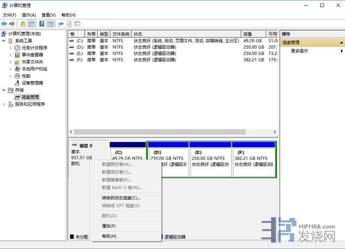 如何判断硬盘是否使用的是MBR分区:右键点击“我的电脑”——管理——磁盘管理——右键点击音乐磁盘,弹出对话框(如下图),查看对话框里是否有“转换成MBR磁盘”字样,如果没有,说明该磁盘使用的是MBR分区类型,需删除卷,重新进行格式化——磁盘分区——选择GPT格式。