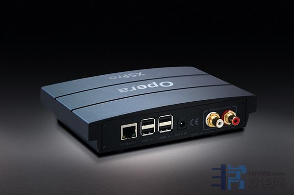 从机器的外观上看,X5 pro拥有娇小的身躯,真的很可爱。机壳虽然小,但不惜成本,由全铝一体化铣出,显得很厚重,三个铝条上有着Opera的logo和X5 pro的型号,拿在手里,沉甸甸的,和市面上流行的塑料机壳有天壤之别。这样做的好处是有效率地抵御震动和干扰,声音也会更为纯净,缺点自然是成本高。