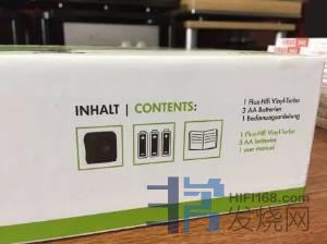 先看一下盒中内还有什么东西,产品由专门的硬纸格子盒装着,左边的就是Vinyl Turbo ,右边则放置三颗AA 电池以及用于Vinyl Turbo 的过滤芯。先看看Vinyl Turbo ,与Flux-HiFi 的另一产品Sonic 的作风一样,机身采用全黑设计,形状上大致呈一个正方形。