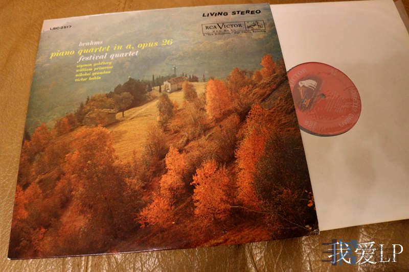 3090,罕见名盘,勃拉姆斯《A大调钢琴四重奏》,由哥德堡、普里姆罗斯等组成节日四重奏团。RCA美国头版(4S/1S),NM,折实480