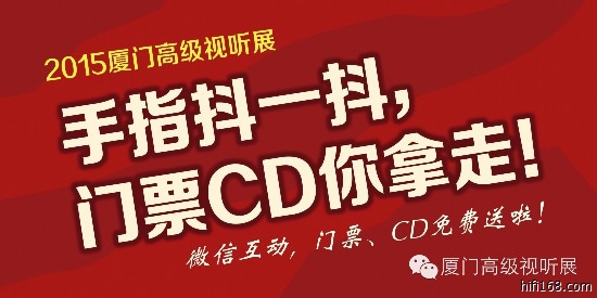 2015年10月21日-10月29日,分享此活动并关注“厦门高级视听展”将转发的朋友圈截图及姓名、手机号码以聊天方式发送至本公众号,每天前50名完成以上步骤即送纪念CD一张!