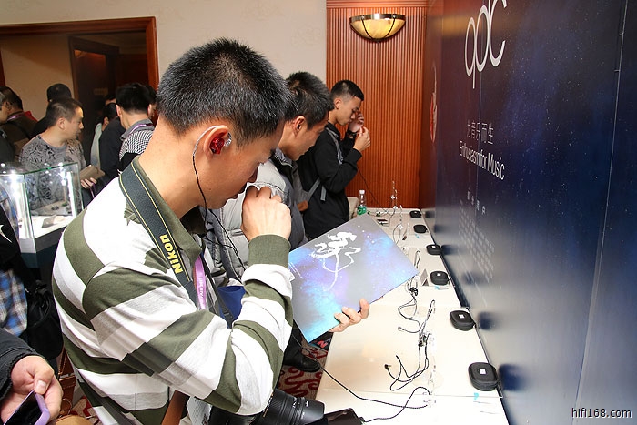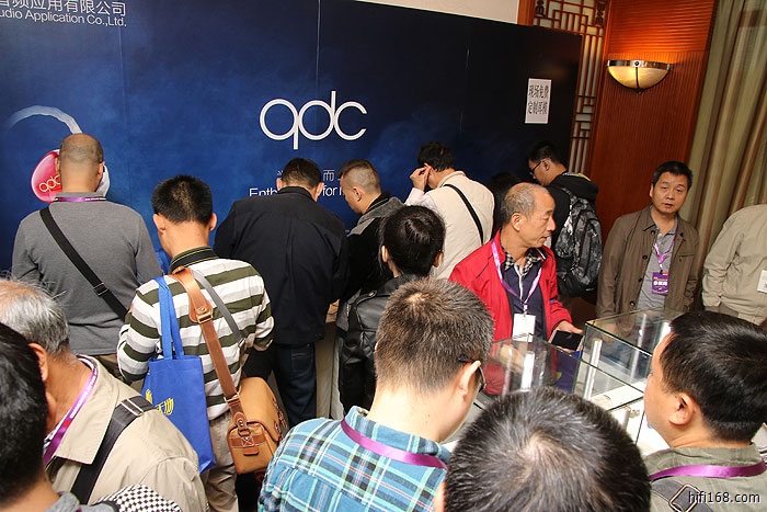 8楼VIP3房,qdc耳机展房,深圳一家已经有十多年历史的军工企业,做各种军用耳机的,现在进军民用领域,全系列用美国Knowles动铁单元,起点非常高,分3、4、5、8单元,例如8单元的就是高音X2、中音X2、低音X2、超低音X2,售价从3000多到9000多。声音类型又分3类,录音室监听版,舞台专业用,HIFI发烧版。