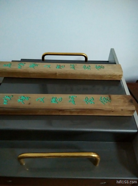 晚上继续试继续玩,把接一个排插的电源线从西电线换成老凌的作品线(德国MUNDORF金银线和西电线混合而成),在两个排插(老凌做的,插座是老合宝,和CLK卖的那种差不多样子,外壳是黄铜的,带滤波,效果还不错)下和唱放主机下垫上老凌的中国钉,这些本来都有在用,后来分给CD副系统用了,现在考虑到还是把黑胶主系统做完美,所以还是把这些附件重新配置回来。上了后感觉还是明显的,主要是乐感更好,声音更活了。不过老凌的这些东西价钱并不算便宜,一副钉都在千元左右。就不特别推荐了。很多人在器材下都垫板垫钉,但排插下一般不特别注意,有钉的朋友可以试下排插下也玩玩钉,看看感觉如何。