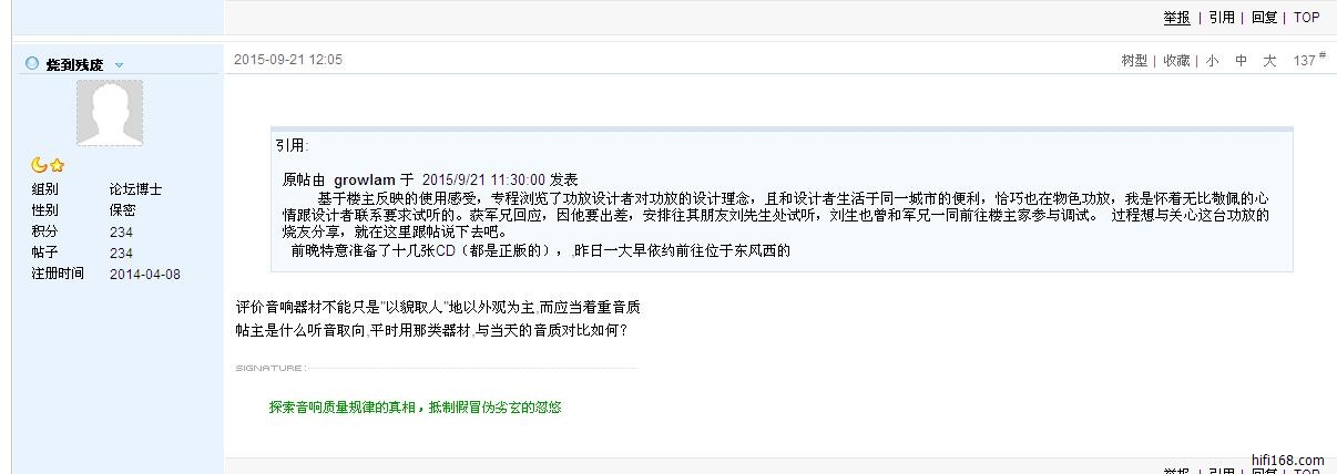 原帖由 烧到残废 于 2015/12/31 9:54:00 发表海外定制?请问是哪个作坊,作者?运输成本你算过没,如果真是老外做的,那么手工费你只要要多少吗?才几百元??说实话吧,发烧友不是随便发个文章就能忽悠的以上就是当年一位网友质问:[url=http://bbs.hifi168.c......