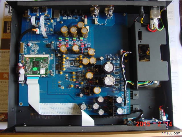 本人是一位业余爱好者,仅属于数播知识入门级,且又是电脑盲。但平时也喜好动动手,对新生事物爱探其究竟。R8s保持欧博一贯特有的外观,加上香槟金色,给人的感觉是大气、高贵、精致。香槟金R8s拿上手顿感沉甸甸,一称竟达13Kg.难怪竟要168元快递费。168(要侬发)权当图个吉利吧。如此体量再加上特制的橡胶地脚,给人极其稳重的感觉,这样设计能减少震动给机器带来的影响。顶盖的10只方孔保证机器哪怕长期在酷暑下工作也不会过热。打开顶盖,进入眼帘的一切(见附图),完完全全体现了欧博人的发烧理念:右面二只R型电源变压器分别给数字、模拟电路供电。(在我心仪的三家旗舰数播中,唯独欧博是双变压器)本来R型变压器对外干扰就低,再加以屏蔽隔离,噪声基本隔绝。紧挨着是为数字、模拟供电的线性电源。滤波电容选用了日本nichicon顶级发烧音频电容(我们知道音响器材要有好声音,电源很重要)。中间是选用AKM公司AK4990芯片的DAC模块。左面是CPU模块,值得一提的是R8s采用了二颗美国Crystek极品级晶振。它是CPU正常、低噪工作的可靠保证。上方是数字、模拟输入/输出口。音频RCA采用德国WBT优质品,平衡输出端子采用瑞士Neutrik发烧级产品。欧博的设计工程师考虑的很周到:模拟音频有RCA/平衡输出口,数字有外接CD/DVD-ROM口、有2.5/3.5英寸移动盘接口、网络接口、有光纤接口、有5V电源接口、有数字音频同轴输入/输出接口。目前市面上需要的接口R8s都全了,应有尽有。重要的是R8s不仅是一台高档数码播放一体机,同时也是一台数码转盘,亦可成为独立的DAC解码器。它带给了发烧友可多种器材搭配,增加了换用不同器材带来的乐趣。接上网线,还能接收国内外音乐电台。海量资源,数不胜数。