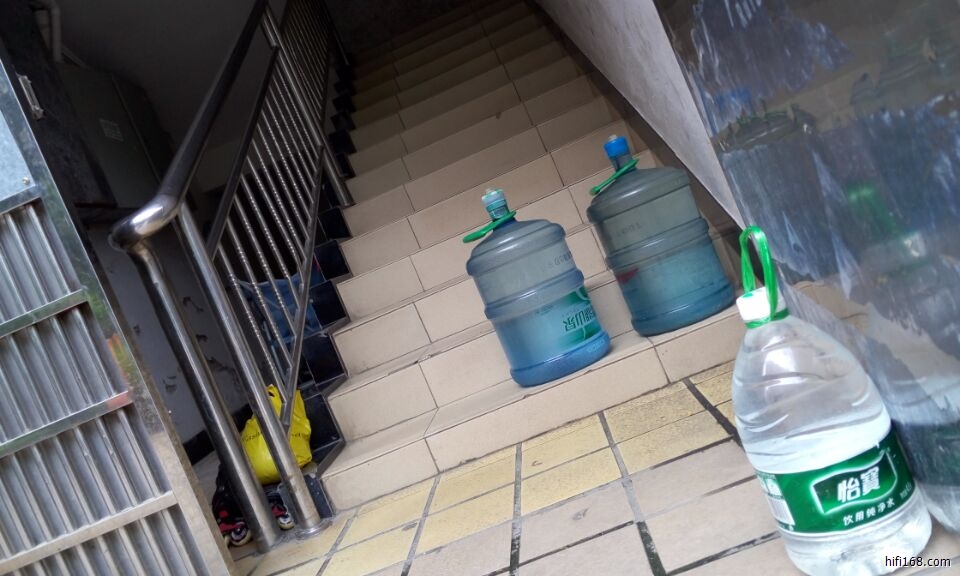 两大桶水,19.5升*2,加上桶子,40斤每桶。照例一手一个,挽上7楼: