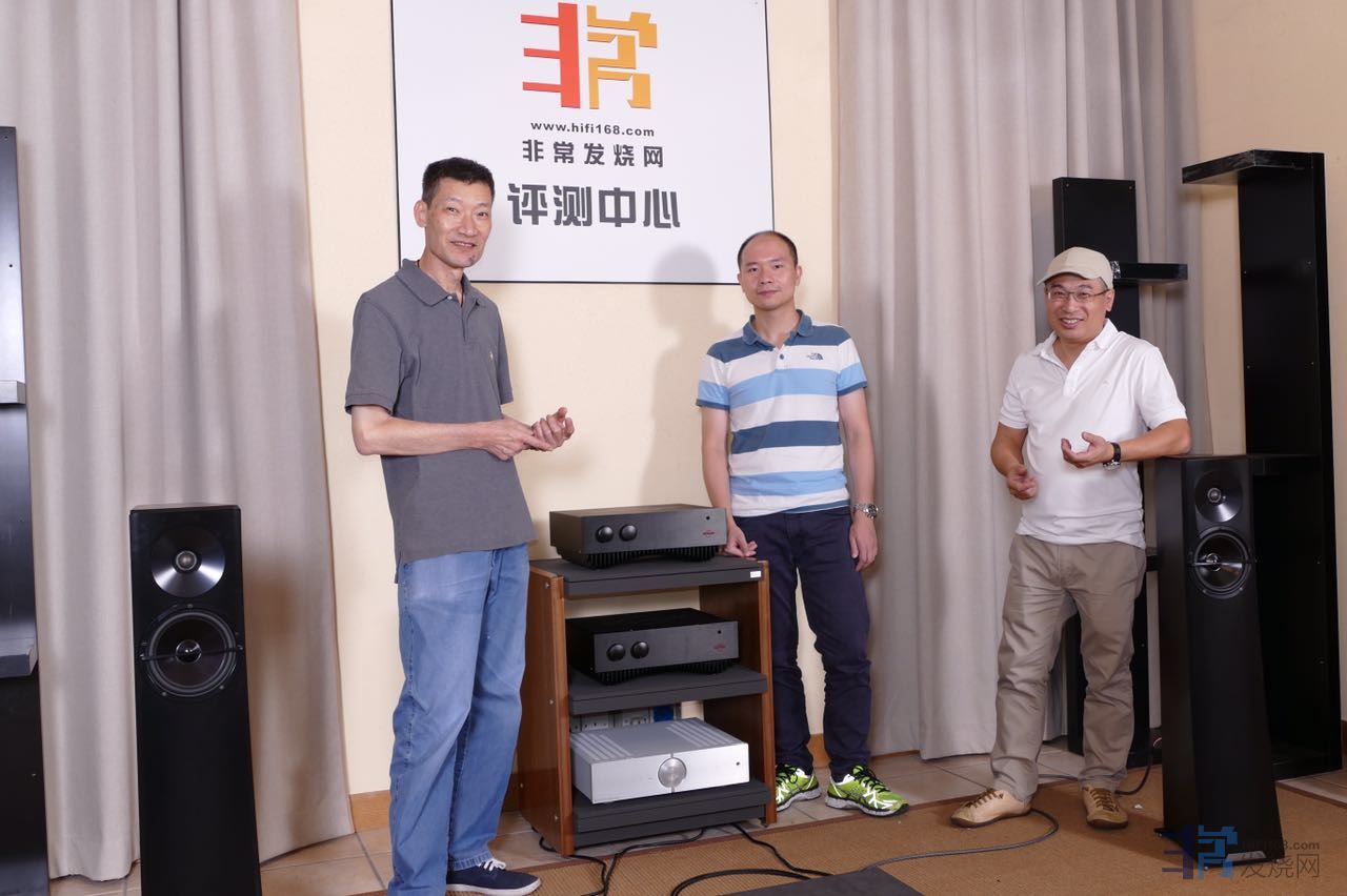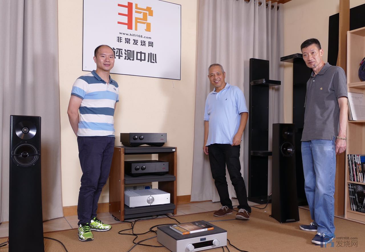 著名音响评论人HIFI168创始人周道前辈(右一)和广州交响乐团录音师邓奕坚老师(中间)前来指导。