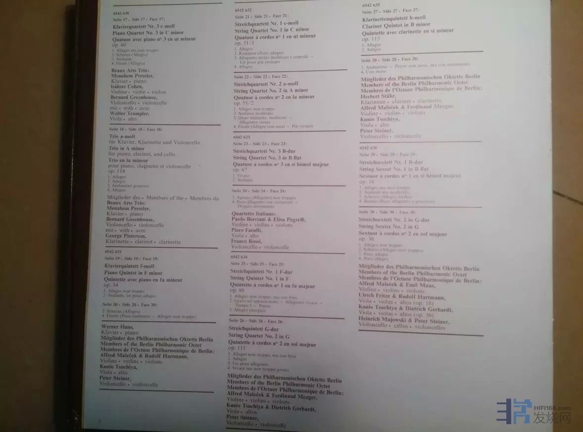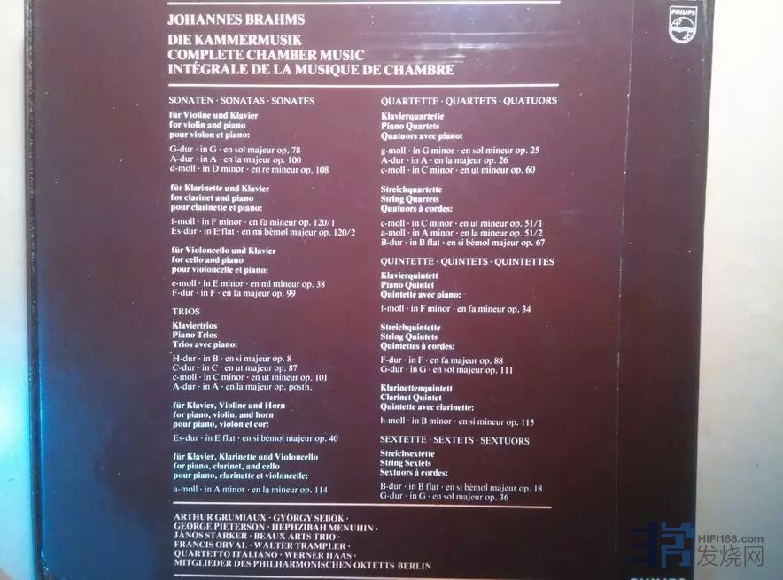 [/size][/font][/align][align=left][font=微软雅黑][size=3]64、勃拉姆斯 全套室内乐 PHILIPS 荷兰 红白标 15LP 盘NM/盒NM- 1650元[/size][/font][/align][align=left][font=微软雅黑][size=3] [/size][/font][/align][font=微软雅黑][size=3]这套黑胶非常难得,收集了勃拉姆斯的小提琴奏鸣曲、弦乐三重奏、圆号三重奏、钢琴三重奏、单簧管四重奏、钢琴四重奏、弦乐四重奏、弦乐六重奏。演奏家及演奏组合均为那个年代最顶级的:小提琴家格鲁米欧、大提琴家斯塔克、钢琴家塞波克、圆号弗朗西斯.欧华、单簧管赫伯特·史塔尔、美艺三重奏团、意大利四重奏团等。PHILIPS荷兰版,成色非常好,是不可多得的收藏和欣赏佳品。[/size][/font]