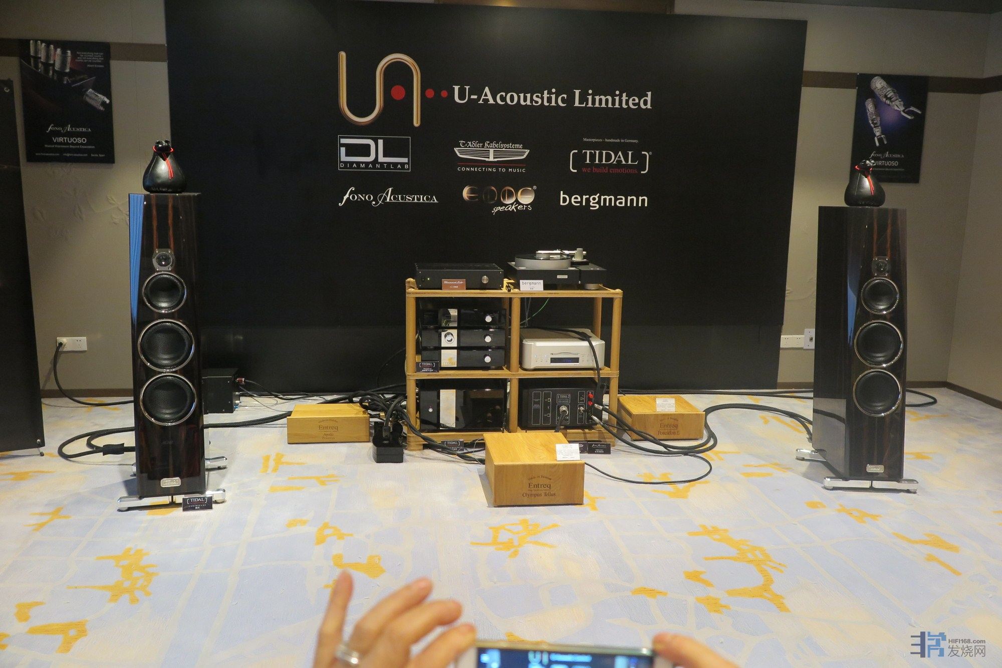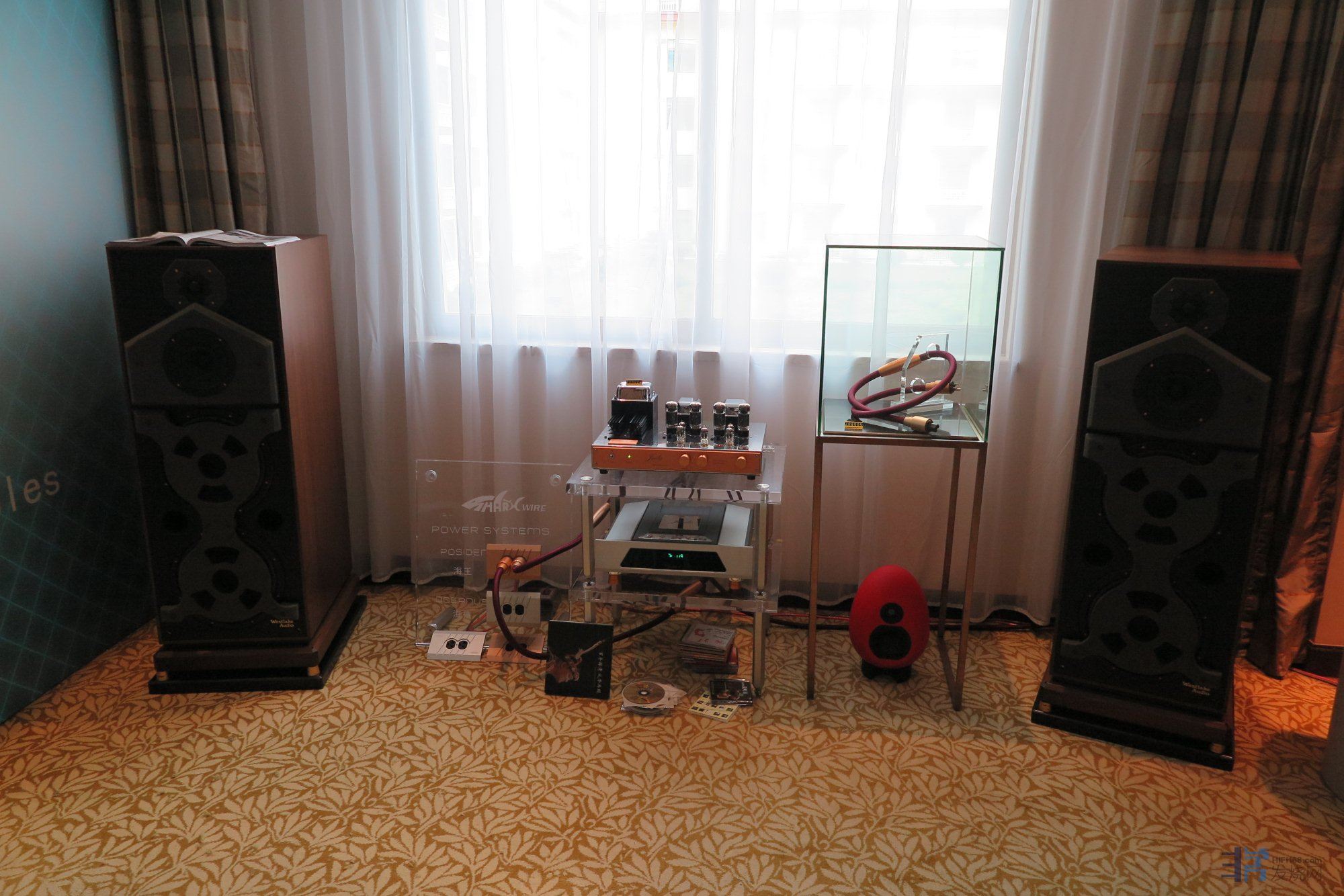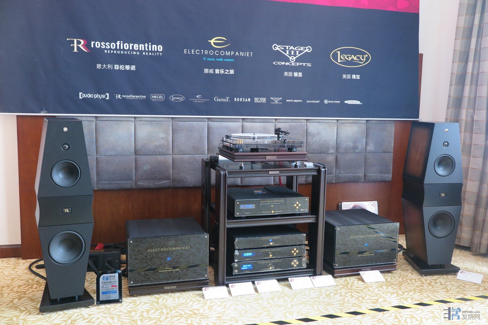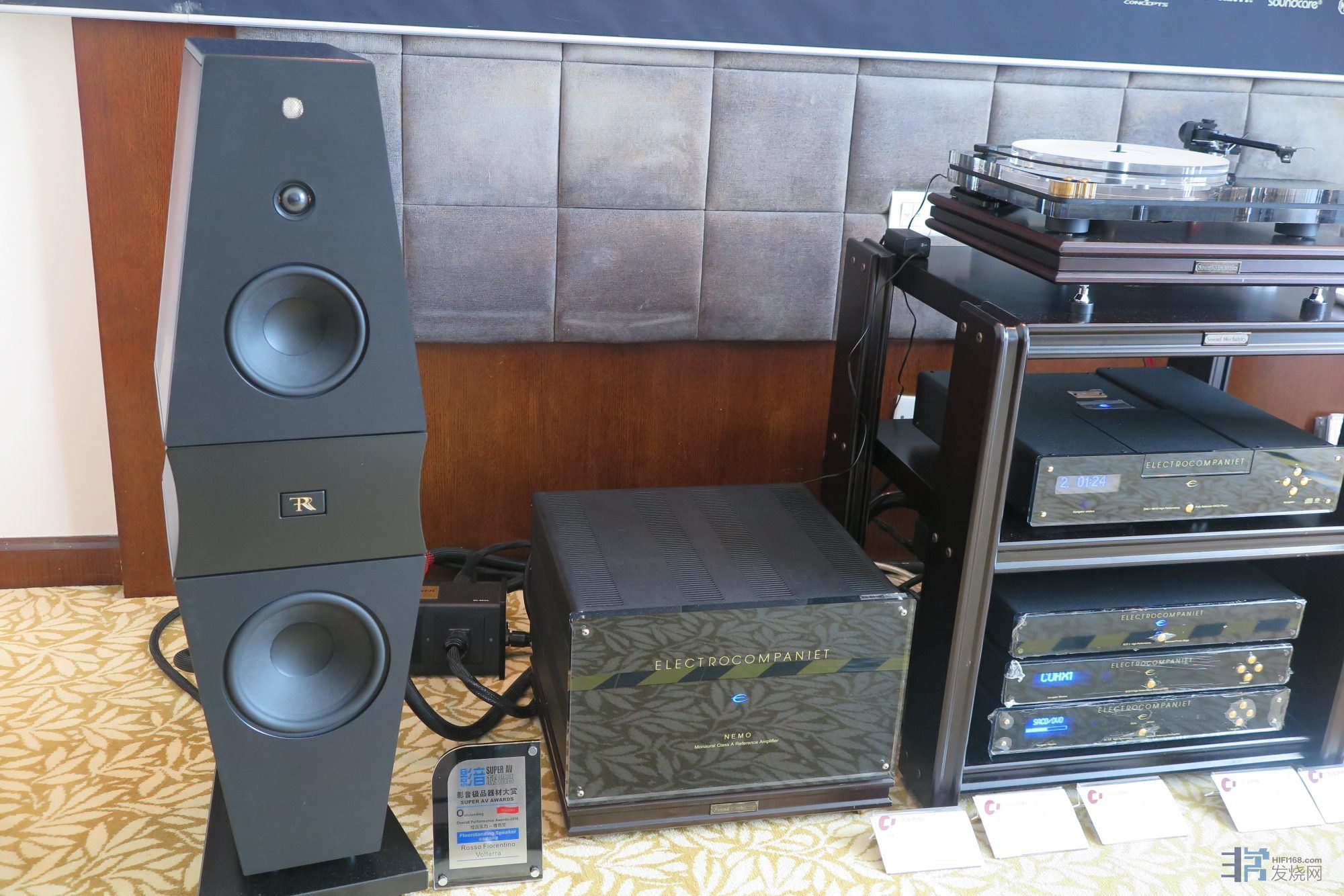 在去年我的音展观感帖子里就提到了昌业展房的这套欧系搭配。只不过去年开声展示的是他家低一级别的小型落地箱。今年昌业搬出了费伦蒂诺的高级别落地箱做展示。在声音风格上一如去年,从容悠长,饱满松茸。一套数码前端+晶体管前后级在费伦蒂诺身上发出了带有明显传统LP风格的声音。区别在于今年的这款落地箱呈现出了更加饱满厚实,更为蓬松的中低频和流畅的三频衔接度。单从一些室内乐作品和人声而言,这套系统的听感甚至可以干掉不少在展会上贵它很多的hiend系统,而今年这对落地箱播放交响乐作品时也远比去年那对多了不少能量感和规模感。整体平衡顺畅度无太多挑剔。但仔细听来,这套系统也有它的明显不足:在播放大动态作品时其层次感和细节的剥离度并未有什么亮点可言,中高音铜管乐器也少了些应有的穿透力和色彩。当然,昌业也是明智的,在人流量大的时候,交响乐作品基本很少做演示,基本都是以中小室内乐作品为主,把这套系统的特色和优点充分呈现给了听者。总体而言,我还是之前的评价:如果不追求层次感,密度和细节展现的极致,这套系统会给人以非常有内涵的,悦耳舒畅的表现。是一套可以让人“退欲”的佳品。反之,它的魅力和价值可能就要打些折扣了。