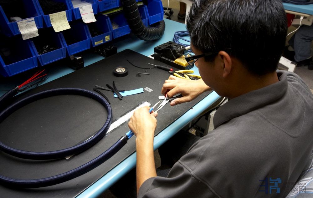 这位老兄在制作喇叭线,所有工序都是手工制作,难度来说并不复杂,但是要有一颗宁静的心,才能把细节做好。