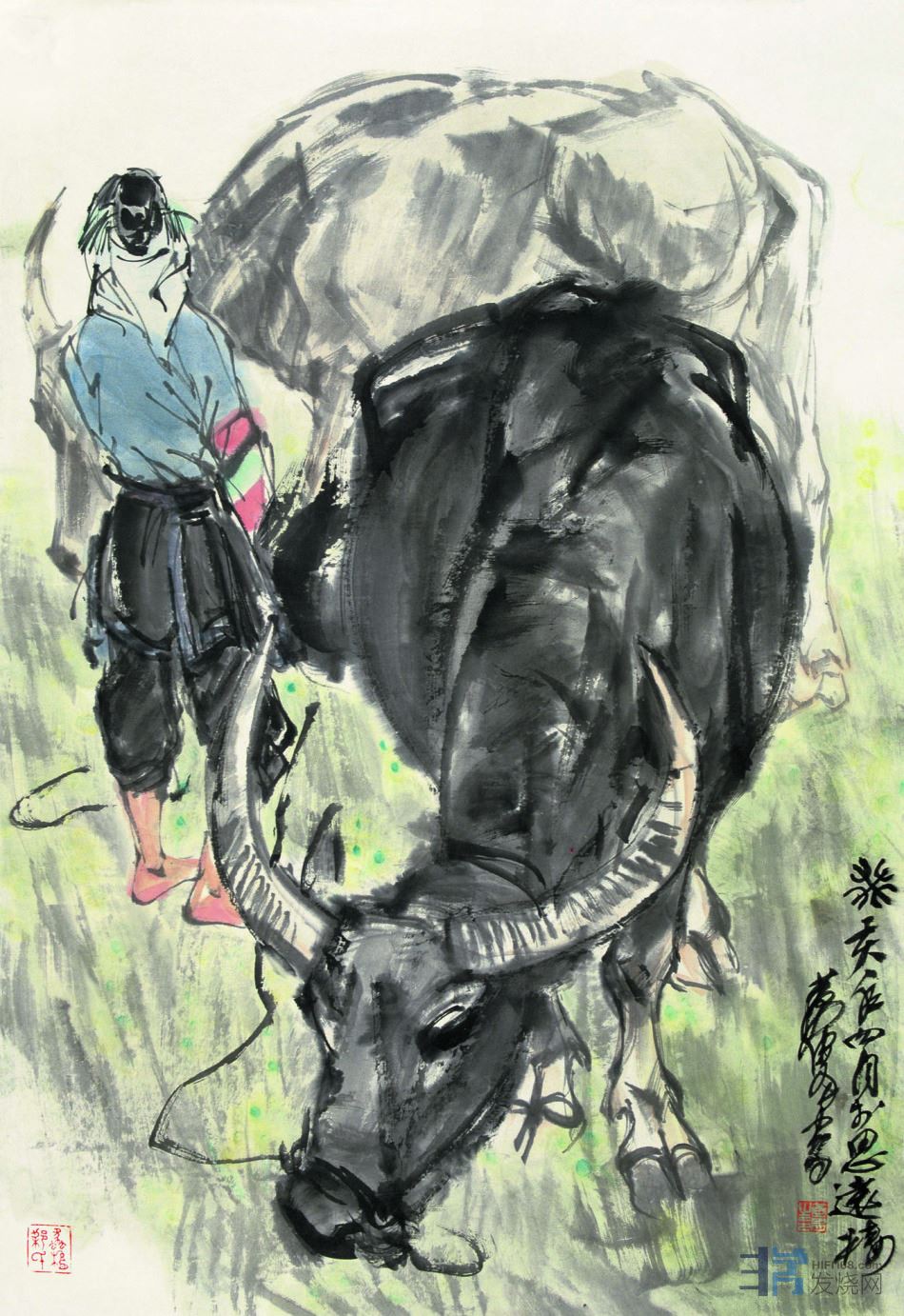 黄胄画鹰和牛: