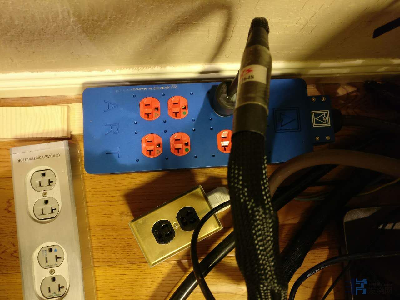 之前是在入墙之后增加总线和排插环节,那在总线后直接对比排插会如何?曾经安利周边烧友做的DIY排插在ART排插面前,真是好一个惨不忍睹啊。想想我用的都是不差的HIFI部件,瓦特金、古河金、荷宝5362、倍耐力4平方串联、牛王厚铝外壳,用了多年感觉不错,应该效果区别不大吧。可结果是,能量萎缩明显,音场收缩了,动态拘谨了,声音平面了,音像形体都变得离散飘忽躁动,已经看不到稳定清晰的画面了,频宽密度厚度音场等重要的HIFI要素都在对比中不值一提,就连电平和音量都感觉小了不少,要不是亲耳所听可能难以想象,可现实就是这么残酷,自己的DIY在品牌作品面前真的变成了可怜的山寨,就连不同插芯的对比都在排插巨大差异面前变成了调味的区别。