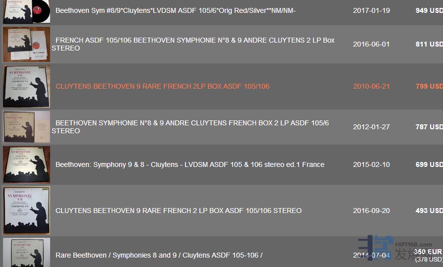 两位指挥的贝多芬第九,准确来讲,克路易坦的其实也不便宜啦。按成交的记录看,克路易坦的版本,价格差别比较大。