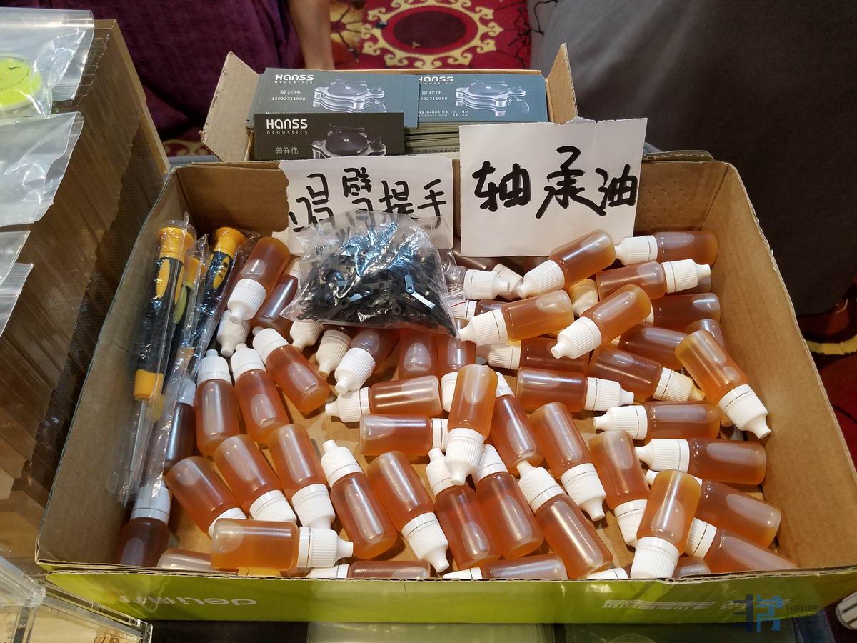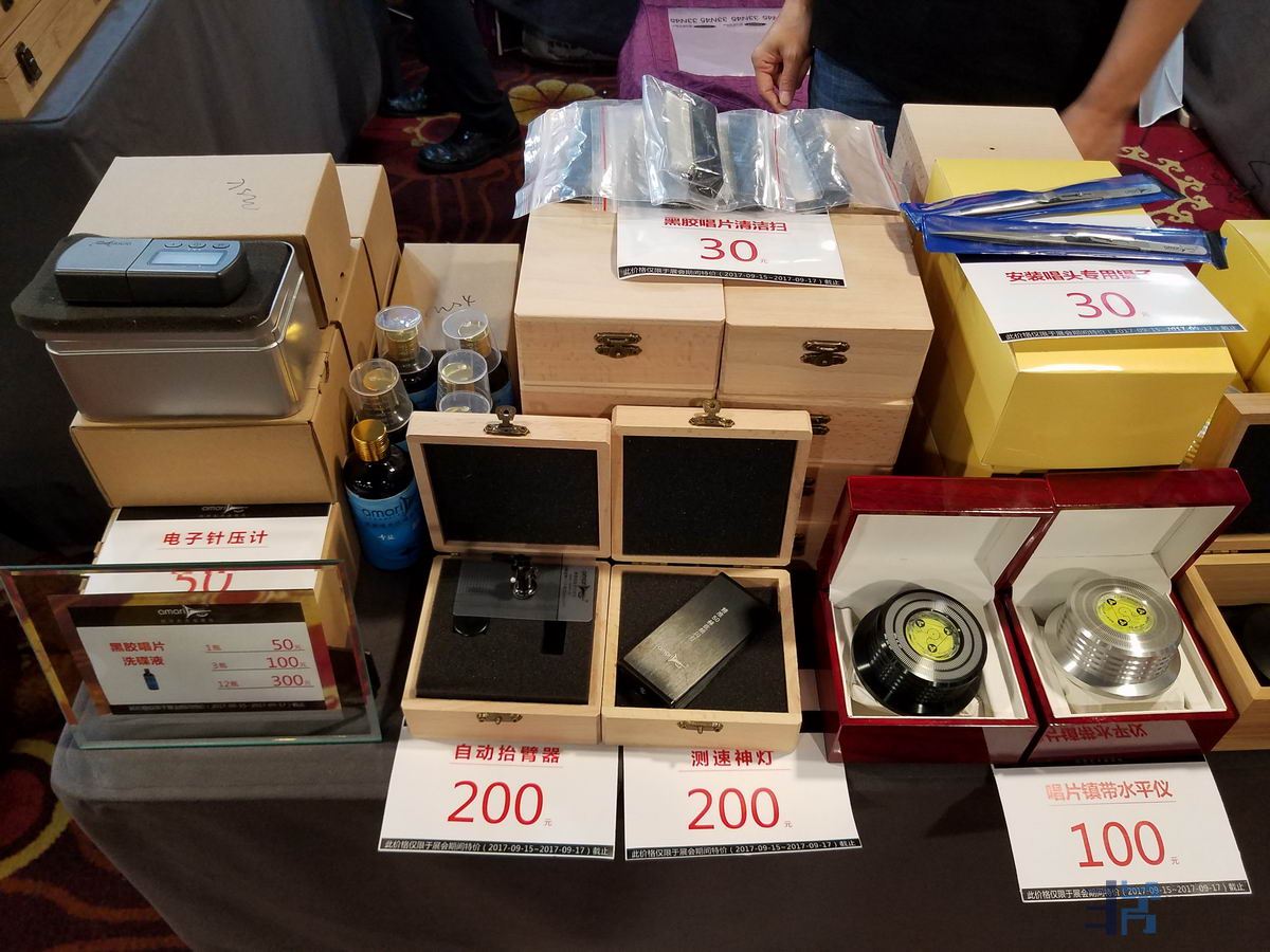 阿玛尼非常齐全的黑胶周边产品,展会期间全部有特价,我也买了一个针压计及一瓶轴承油:
