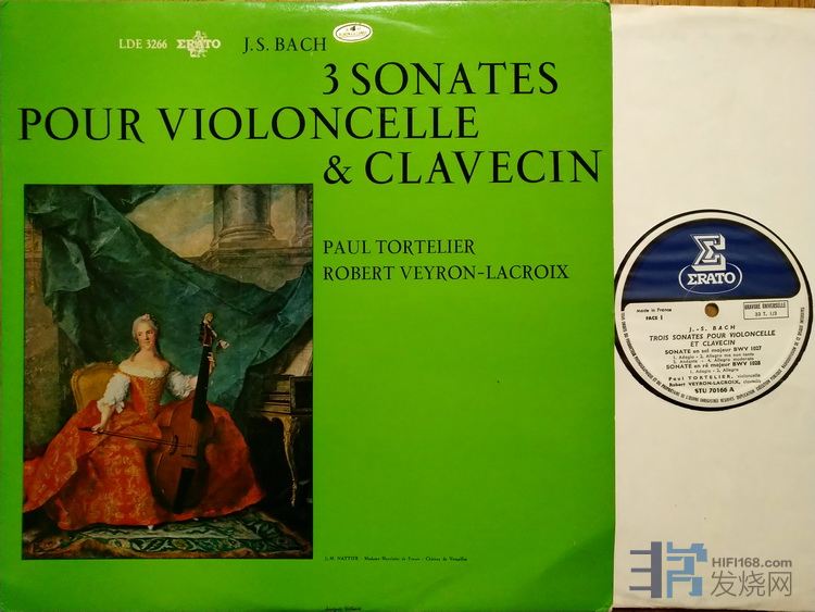 1112 巴赫:大提琴奏鸣曲,托特里埃大提琴/拉克鲁瓦大键琴,Erato法国首版,EX+(一些细痕),60元