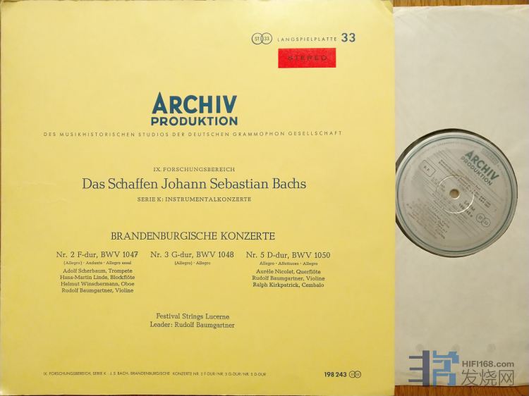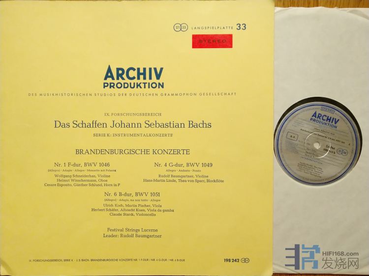 1125 巴赫:勃兰登堡协奏曲 第1、4、6号,鲍姆加特纳指挥琉森音乐节乐队,DGG/ARCHIV红头首版,NM-至NM,240元