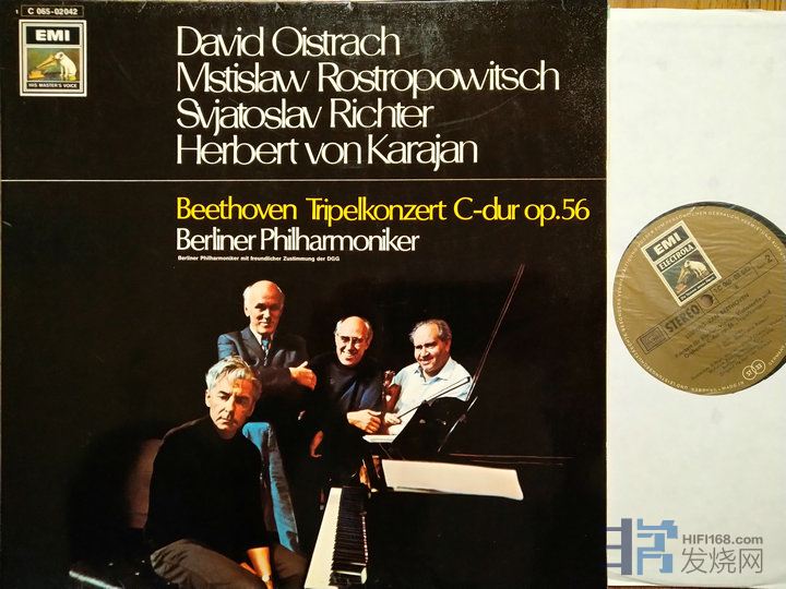 455 贝多芬三重协奏曲,奥伊斯特拉赫小提琴/罗斯特罗波维奇大提琴/李赫特钢琴/卡拉扬指挥柏林爱乐乐团,EMI德国金标首版,NM—至NM,160元