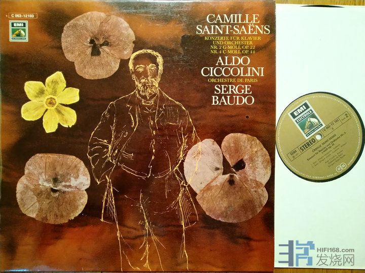 458 圣桑:第2、4钢琴协奏曲,奇科利尼钢琴/鲍杜指挥巴黎管弦乐团,EMI德国首版,NM-至NM,80元