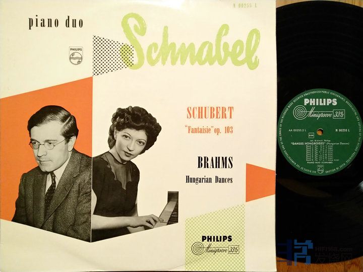 515 舒伯特:幻想曲/勃拉姆斯:匈牙利舞曲,斯奈维尔钢琴二重奏,PHILIPS荷兰Minigroove首版,只有单声道,EX+至NM-(一些发丝细痕),80元