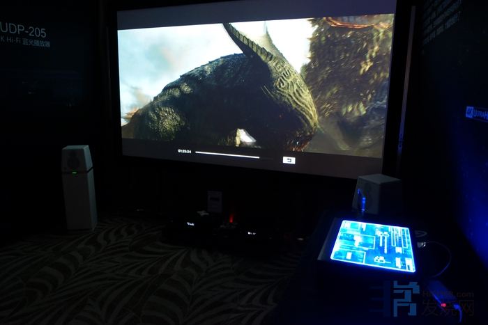 oppo的展台,他家的东西我一直很好奇,虽说是蓝光机,但音响效果也挺好。可惜每次都是展的影院…… 而这个对保真的要求很低很低!