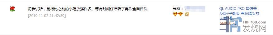多谢上海黄浦区烧友支持,寄回QL AUDIO III唱放补差价升级QL PRO 增强普及版唱放,已发出请注意查收,期待听感![img=20,20]http://bbs.hifi168.com/bbs/editor/images/smilies/default/72.gif[/img]
