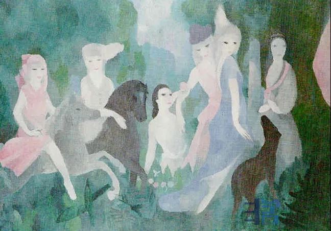 洛朗桑的画作被称为“巴黎优雅的立体派”,感觉有着毕加索和马蒂斯的创作风格,但又具有了柔美朦胧的气息!阿波利奈尔和洛朗桑两个人谈了六年的爱情,最终还是分手了,而诗人阿波利奈尔二年后因战争和流感彻底地离开了这个世界,为此洛朗桑悲痛欲绝!