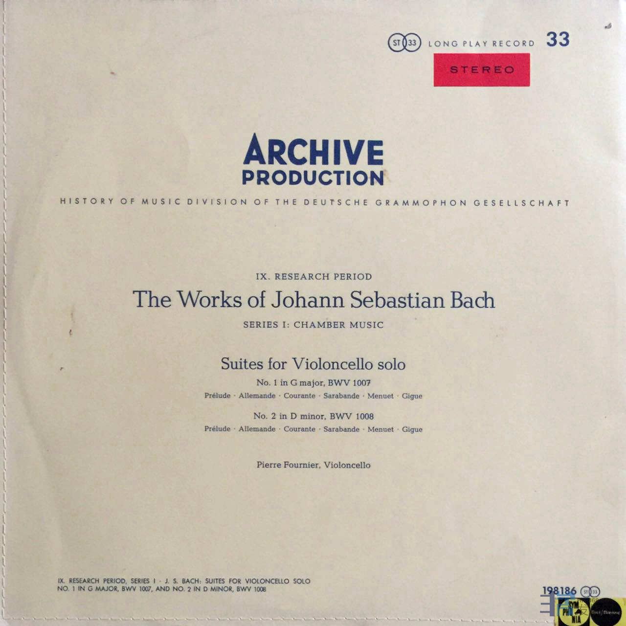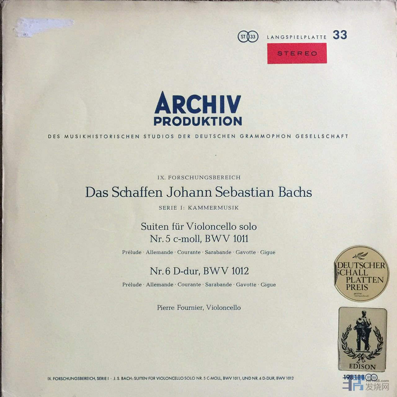 这套巴赫无伴奏大提琴奏鸣曲,由法国大提琴家富尼埃演奏。几乎所有的唱片指南都极力推崇的录音,也是我收藏的巴赫大无中最喜爱的版本,富尼埃演绎无比细腻和柔情,录音效果无以伦比。