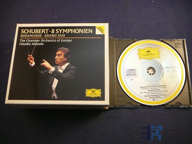 [/size][/color][/align][align=left][color=black][size=10.5pt]9. [/size][/color][color=black][font="][size=10.5pt]古典老唱片(5碟)(西德银圈首版)DG4042舒伯特八首交响曲,欧洲室内乐团演奏,指挥:阿巴多,西德PDO银圈版,有2张02版,其他01版,无.码,DDD,品相完好,无划痕Y580[/size][/font][/color][/align][align=left]