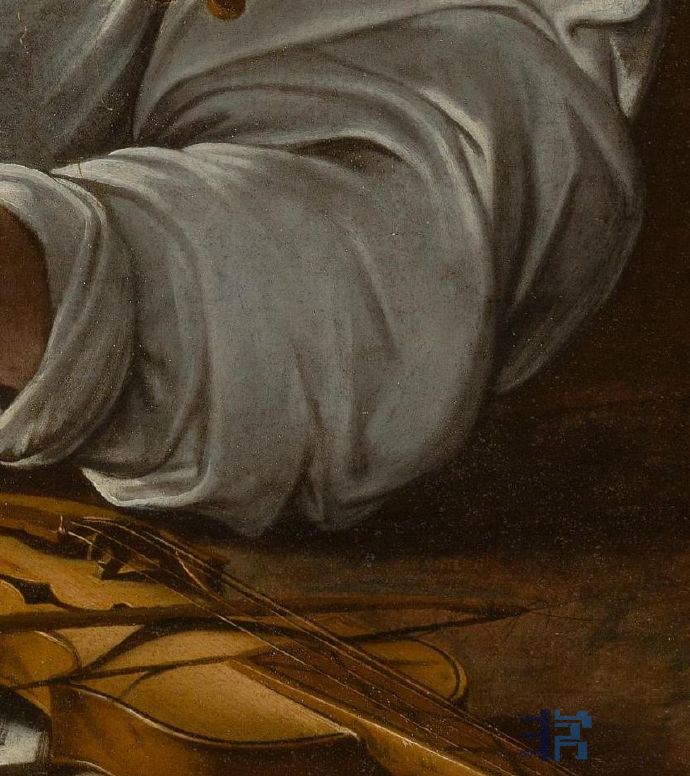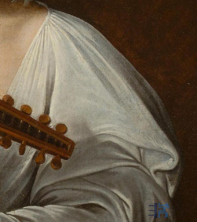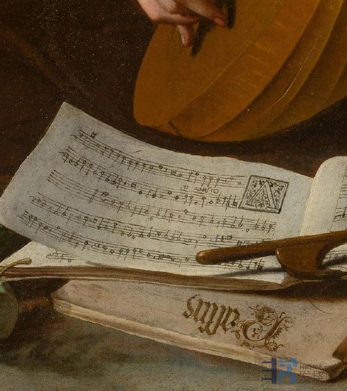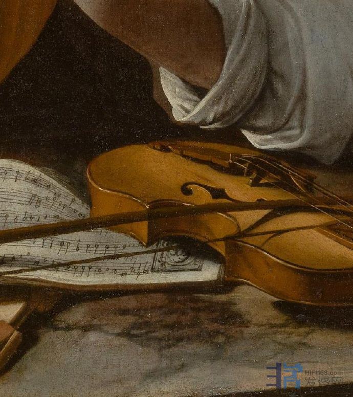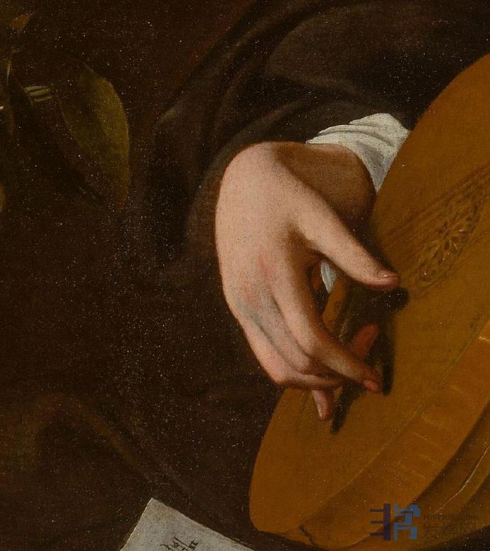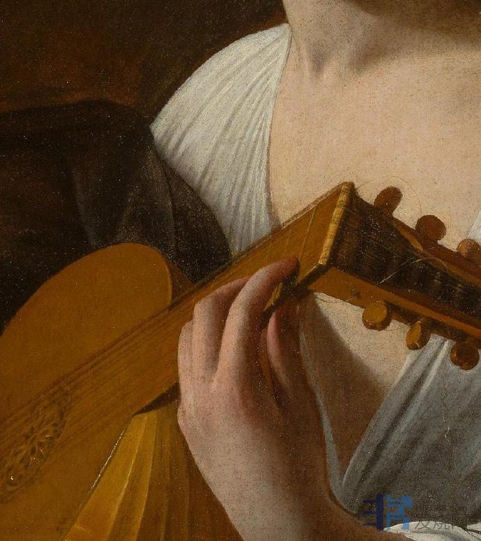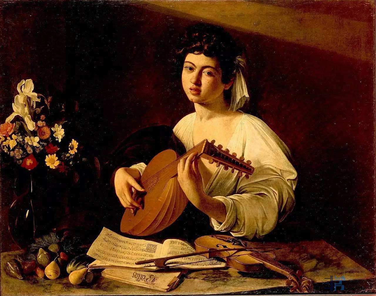 《鲁特琴的演奏者》卡拉瓦乔《鲁特琴的演奏者》有三个相似的版本,模特均是当时西斯廷礼拜堂合唱团的歌手佩德罗•蒙托亚,模特身着当时的女性服装、发带,这引起了人们对画中人物性别的争论。一些研究者有不同的看法:画中模特是红衣主教宫里一名被阉割的男歌手,他的左边放着一瓶鲜花以及一些熟过头的水果和蔬菜,而花卉、水果都容易腐烂,画作寓意“好花易逝,好景不长”,显示出一种在黄昏中等待爱人的情调,流露出哀伤的情绪。