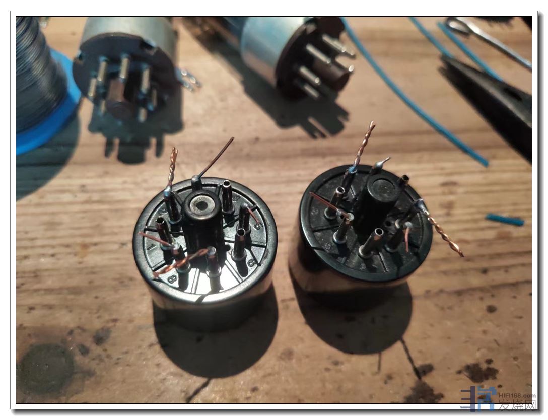 第二是将两只后级阴极电阻间距扩宽了1厘米左右,从而装上了两只性能优异、尺寸也较大的前级退耦电容。效果是底噪纹波直接降至1毫伏,耳朵要贴近喇叭上才听得到轻微底噪。