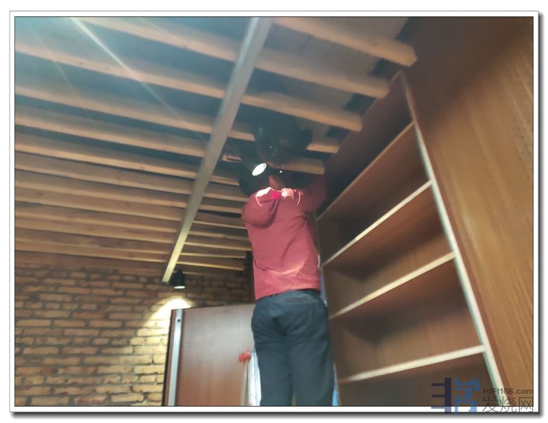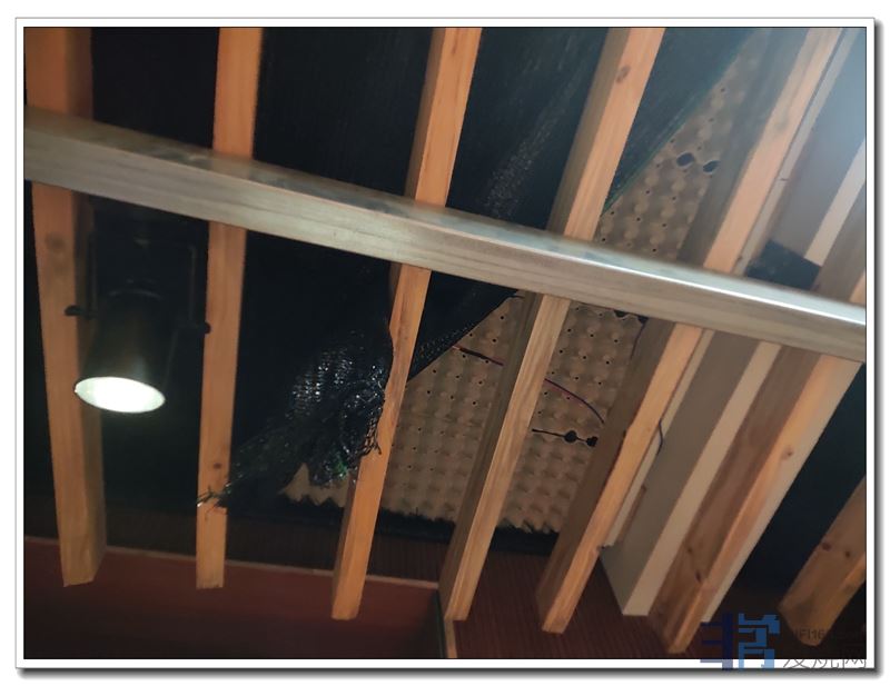 后来整改,拆掉了天花上他擅自加上的遮光化纤网: