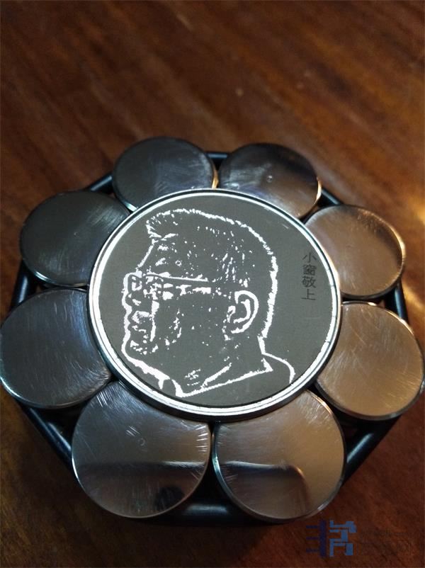 河南的这位卖家朋友挺有中原君子厚道之风,提出要我提供一张头像照片,他给我做一个专属头像版的抛光镜面版的唱片镇以表谢意。我倒有点不好意思了,不过对方既然提出,再行拒绝未免不识抬举。所以我就用手机拍了个头像通过旺旺发给了他。过了个把礼拜吧,昨天收到了如上图这样一个礼物,非常感谢这位朋友,这个礼物是钱买不到的。这也是HIFI168牵出的一份缘分啊。本来写个帖子也就顺手之劳,也没想过要啥回报或利益。卖家朋友这么吃情,据说光抛光他就自己手工抛了好久(因为没有专门的机器),这都不是钱的事,是烧友之间惺惺相惜的情谊和关爱,让我拥有了这么一个订制版专属唱片镇,感谢了!
