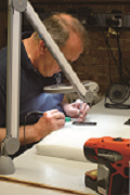 CHORD的SMD贴片印刷电路板委外生产,工厂内只负责组装与测试,线路板太小了只能以放大镜观看▲