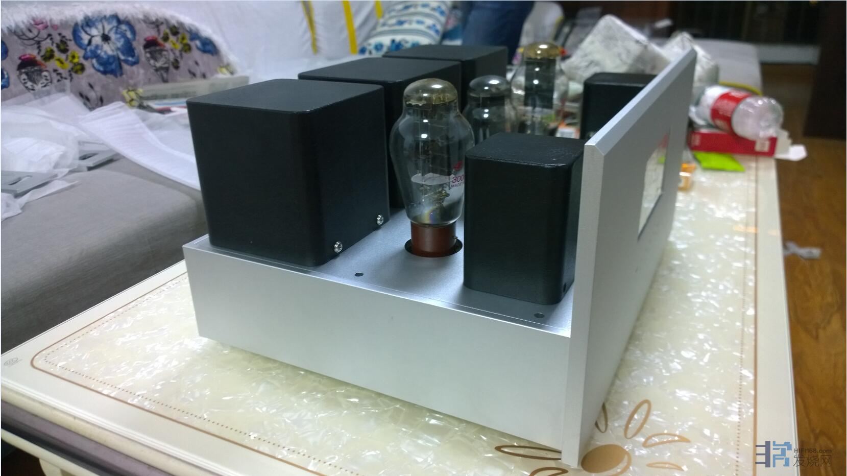 历时半年打造的300B单端样机,KT88推挽也是同款机箱,电路采用两级共阴加推动变压器,可加入平衡接口,这次的样机未考虑平衡接口,整机50斤左右,可推动雨后C7和P3,及3/5A等书架箱,声音框架平衡,音染低,控制力佳,适合十五平米内的听音环境