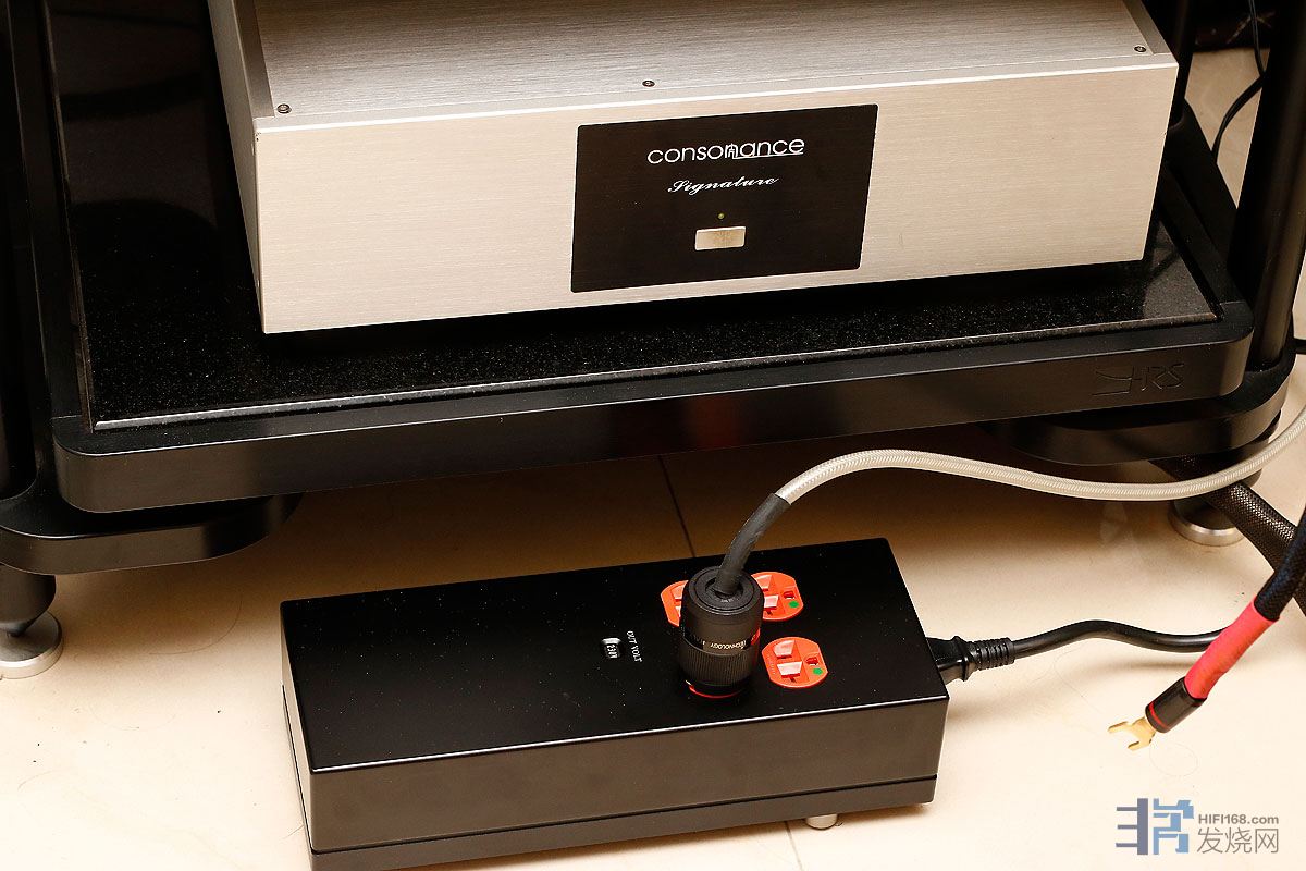 接上E9后,唱放的声音马上更凝聚了,能量感一下子上来了,声音更加生龙活虎。E9一共有4个输出,效果略更明显的是靠近面板的两个,所以,如果插不满,建议插前面两个;或者重要的设备插前面2个插座。