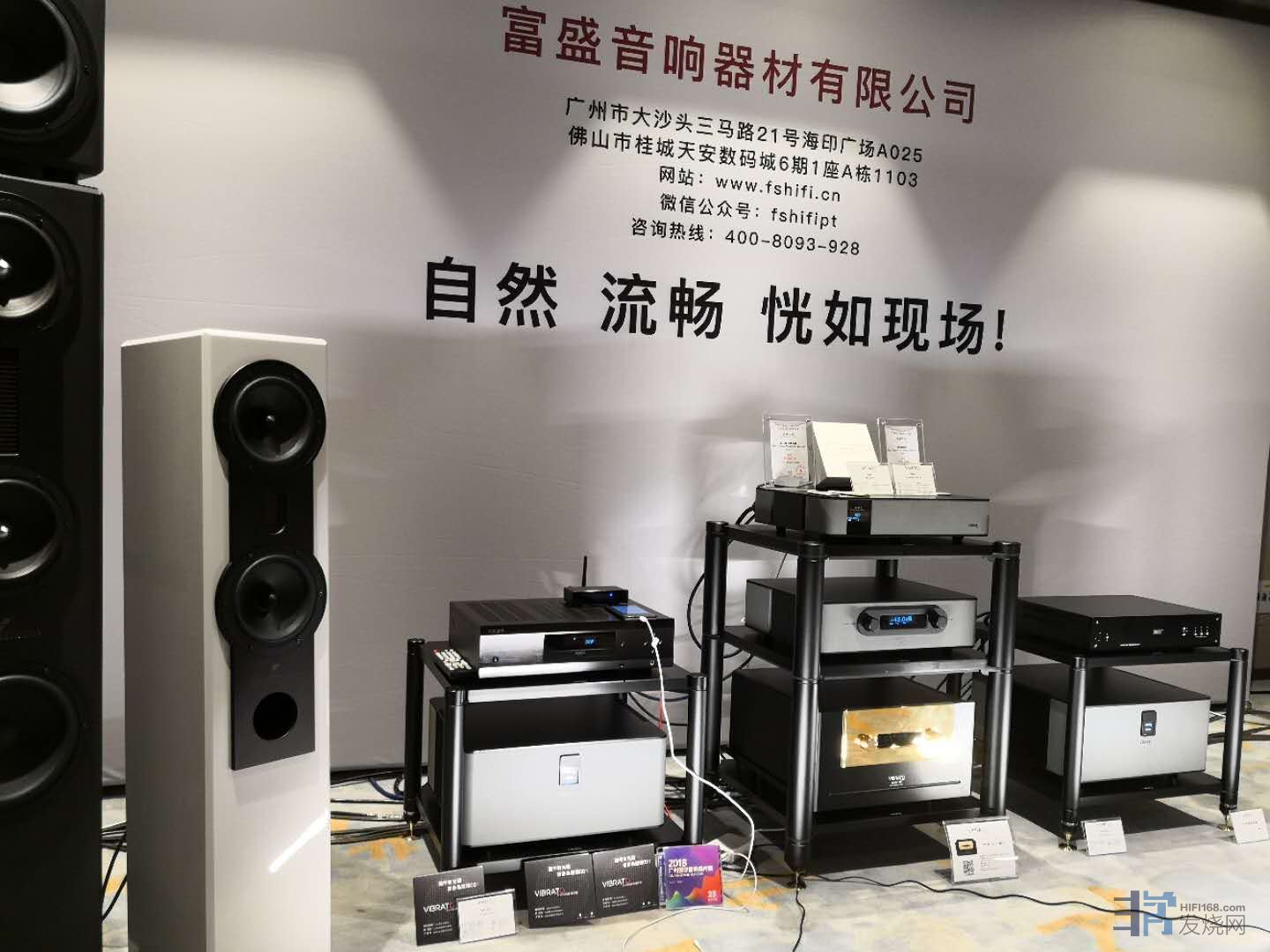 首先要说的毫无疑问是富盛这几年力推的王牌vibrato旗下畅享5.0高清音乐蓝牙接收器,这款产品的多个“第一”头衔在此我不再赘述,网络上都可见到相关介绍。在展会上富盛展房里搭配的是德国F&F6.5寸落地箱,功放亦是vibrato家单声道全平衡前后级。所播放的音源全部是手机下载的音乐软件。从整体播放效果上来看,如果在未知情况下,你很难认为音源会是蓝牙传输产品。丝毫没有一般此类产品稀薄寡淡的数码声表现,整体柔顺流畅同时有足够饱满度和优良的空间层次感。当然其功放音箱的硬素质也为这套系统的基本音效提供了足够的保障。但以我以我的经验,就F&F这种明察秋毫型音箱而言,前端音源如果藏污纳垢的话那是绝对逃不出它的法眼的。而在富盛展厅门口这个蓝牙接收器与纽曼小型书架箱的组合也进一步佐证了了我的判断。