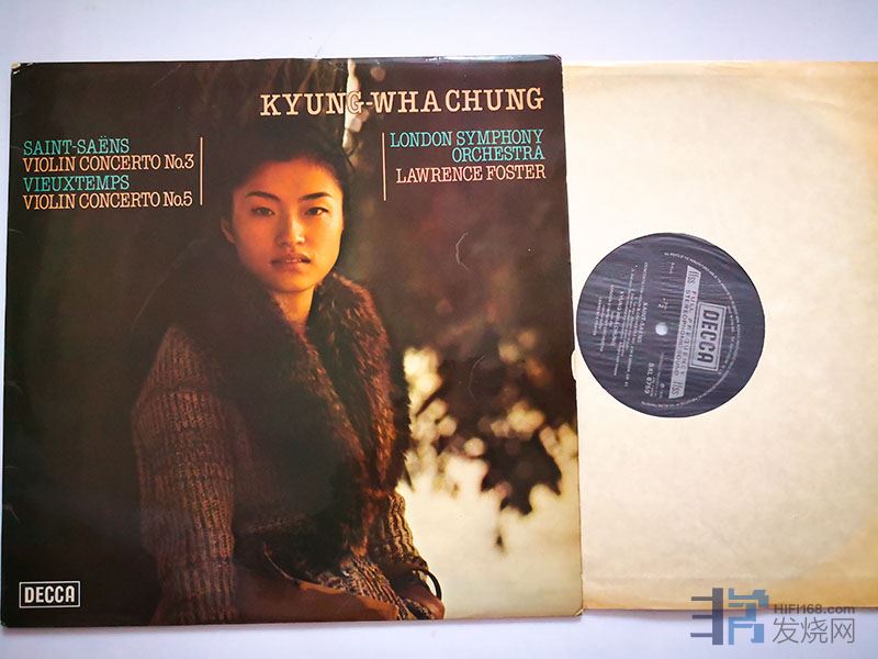 374、经典名盘:圣桑《第三小提琴协奏曲》,维厄当《第五小提琴协奏曲》,郑京和小提琴,福斯特指挥伦敦交响乐团。Decca英国头版,NM-,side2有一极浅的擦痕,播放时仅有几声很细弱的小嗒声,基本不影响听感。特价190元。詹士洛在金斯威尔大厅的录音,很棒。
