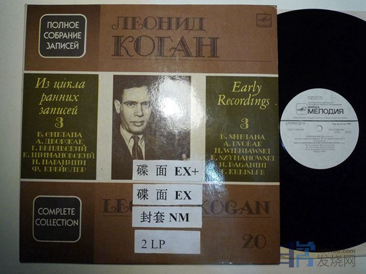 柯岗演奏德沃夏克第一、第二斯拉夫舞曲,维尼亚夫斯基“哀伤的柔板”,舍曼诺夫斯基“夜曲和塔兰泰拉舞曲”,帕格尼尼六首随想曲,克莱斯勒“吉普赛随想曲”,“吉普赛女郎”,“卡法蒂娜”,“维也纳随想曲”,改编自斯美塔那“我的故乡”和歌剧“被出卖的新娘”的三首小提琴奏鸣曲,对开双张,立体声,帕格尼尼随想曲这一面有一处面积比较大的划痕,用手基本摸不出来,但是经过还是有些底噪,如图,此处EX,其余EX+,580块