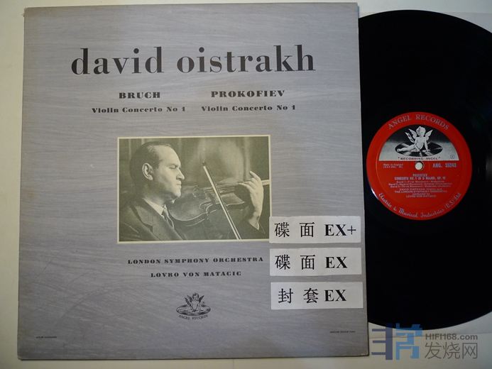 奥伊斯特拉赫演奏布鲁赫第一小提琴协奏曲,普罗科菲耶夫第一小提琴协奏曲,天使唱片,英国压片,单声道,碟面的表面痕迹有点多,实际播放效果还比较安静,70块