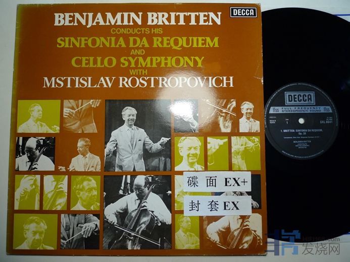 布里顿指挥,罗斯特罗波维奇演奏布里顿的大提琴交响协奏曲,布里顿指挥自己的交响安魂曲,DECCA荷兰压片,90块