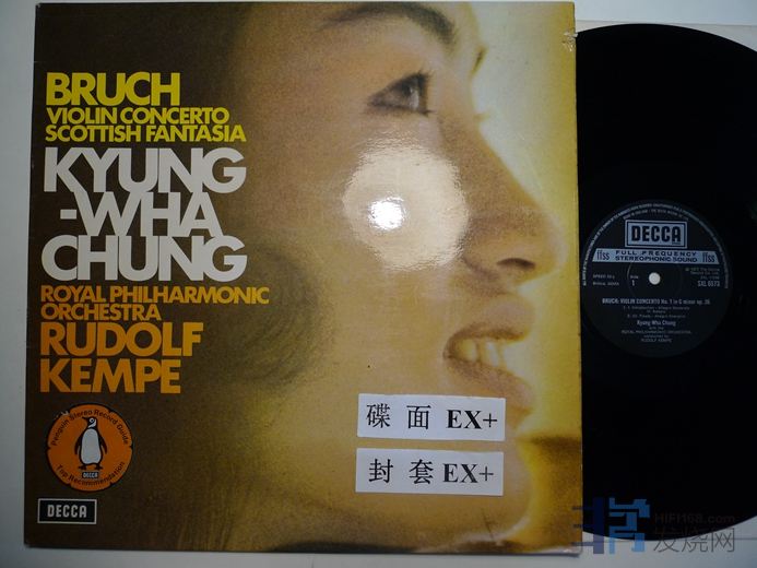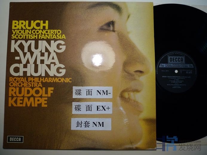 郑京和演奏布鲁赫“苏格兰幻想曲”,第一小提琴协奏曲,其中苏格兰幻想曲的开头有一处小划痕,如图,经过的时候在左声道有“哒”声,不严重,其余在EX+至NM-,比较安静,DECCA英国压片,155块