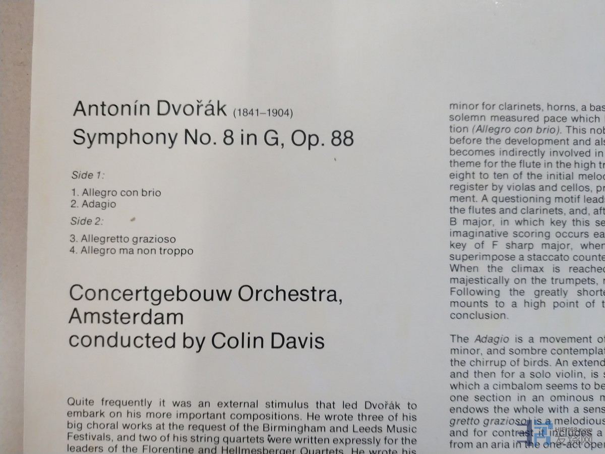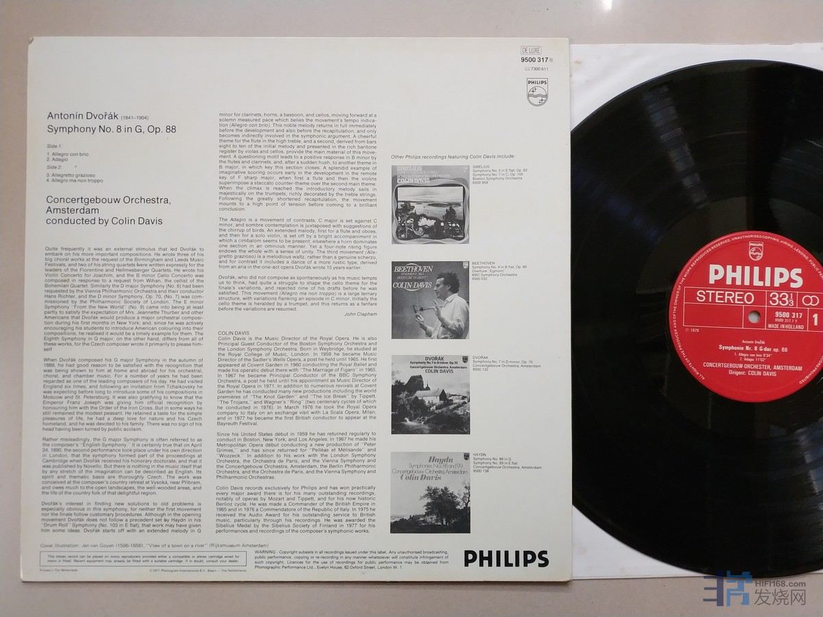 科林·戴维斯 指挥阿姆斯特丹音乐厅管弦乐团《德沃夏克 第8交响曲》,荷兰Philips立体声,唱片NM-,70元