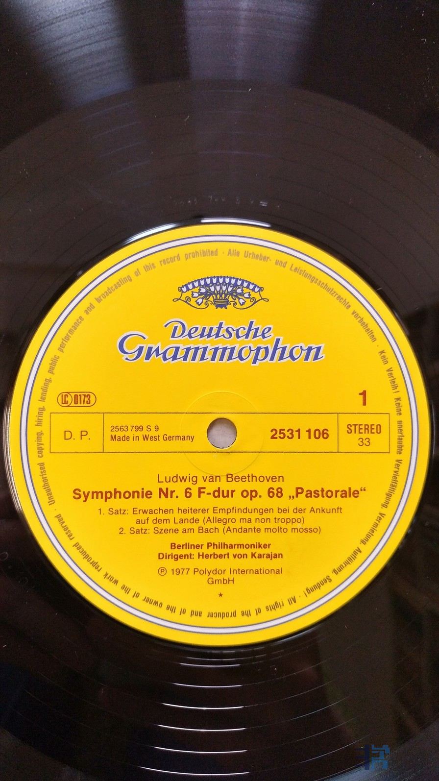 卡拉扬 指挥柏林爱乐乐团《贝多芬 第6交响曲(田园)》,西德DG立体声,唱片NM-,70元